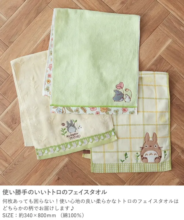 何枚あっても困らない!使い心地の良い柔らかなトトロのフェイスタオルはいずれかの柄でお届けします。SIZE:約340×800mm(綿100%)