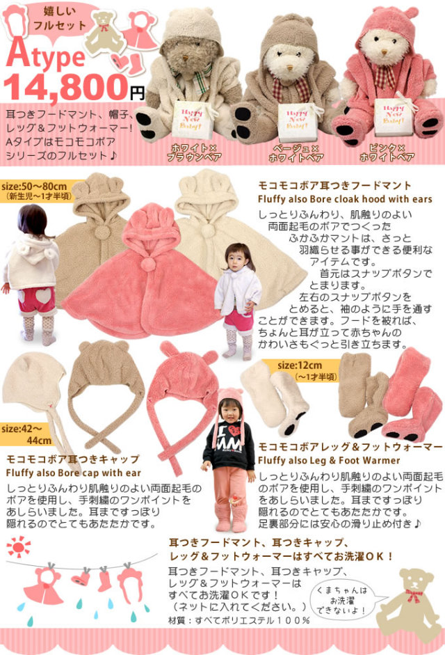 | 商品名 | モコモコボアマント&ふわふわくまちゃん(おむつ付き)Aタイプ |