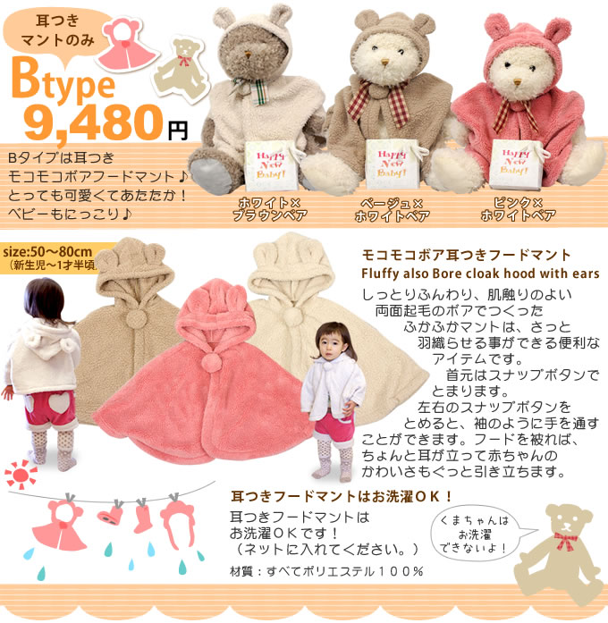 | 商品名 | モコモコボアマント&ふわふわくまちゃん(おむつ付き)Cタイプ |
