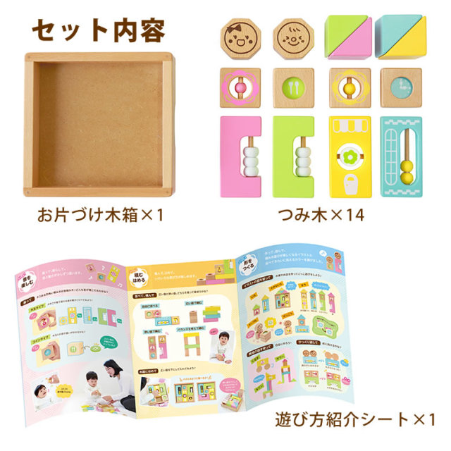 | サイズ・素材 | サイズ: 最小積み木サイズ:約5×5×2.5cm 木箱17.5×17.5cm×H4.5cm 素材: 天然木、MDF、紙 セット内容: 積み木×14個、 木箱x1、 遊び方紹介シート×1 対象年齢:1歳以上 <名入れについて> ご注文時に「名入れ希望」を選択し、備考欄に刻印するお名前を 6文字以内、ひらがな/カタカナで入力して下さい。 ※製作開始から4営業日以内に発送します(土日祝除く) お早めにお申し込み願います。 |