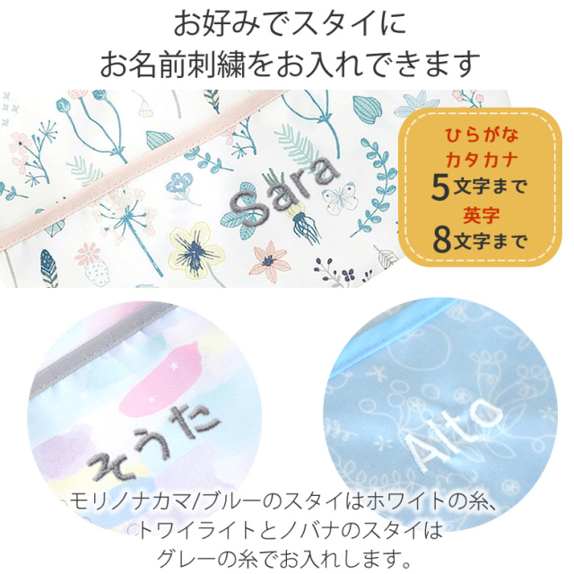 お好みでスタイにお名前刺繍をお入れできます。