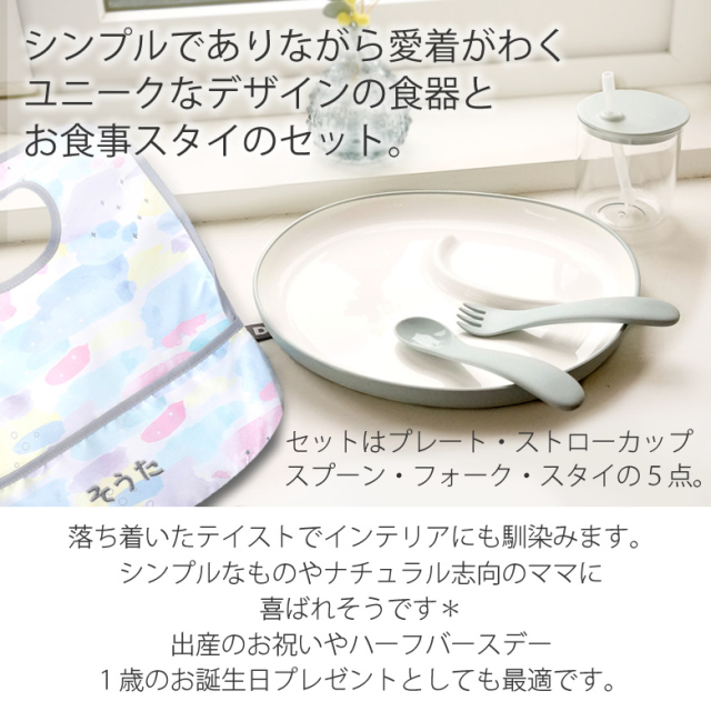 | ベビー・キッズと長く愛用できるベビー食器セット。 シンプルでありながら愛着がわくユニークなデザインの食器とお食事スタイのセットです。 ※食器洗い機使用可 |
