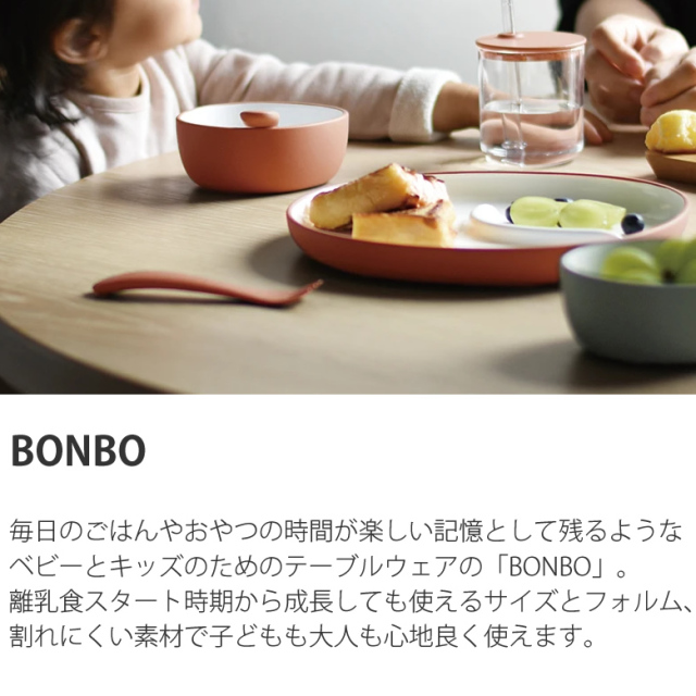 ベビーとキッズのためのテーブルウェアの「BONBO]。