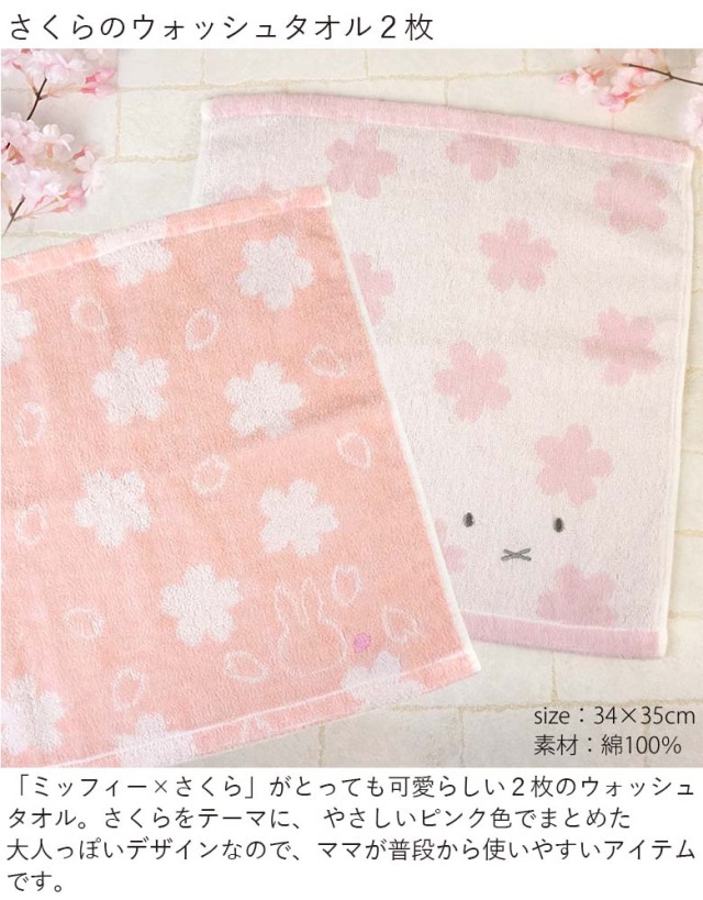 「ミッフィー×さくら」がとっても可愛らしい2枚のウォッシュタオル。さくらをテーマに、 やさしいピンク色でまとめた