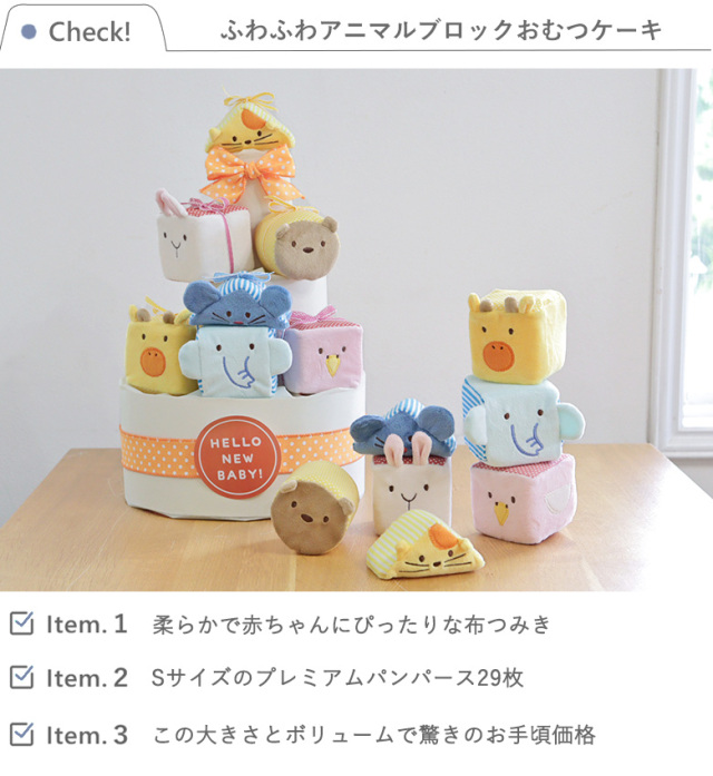 【おむつケーキ】ふわふわアニマルブロックおむつケーキ |