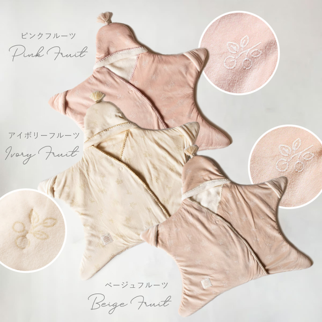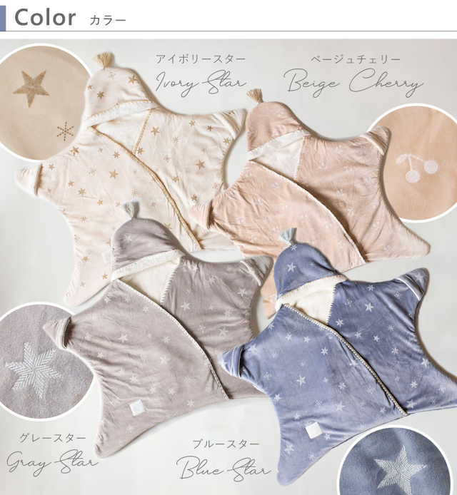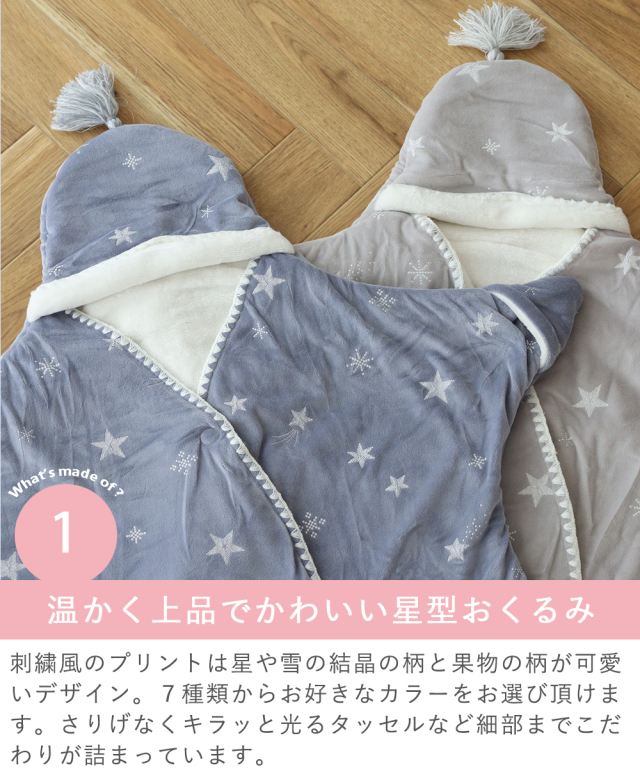 しっとりなめらかのベロア生地がお上品なお星様型おくるみ。