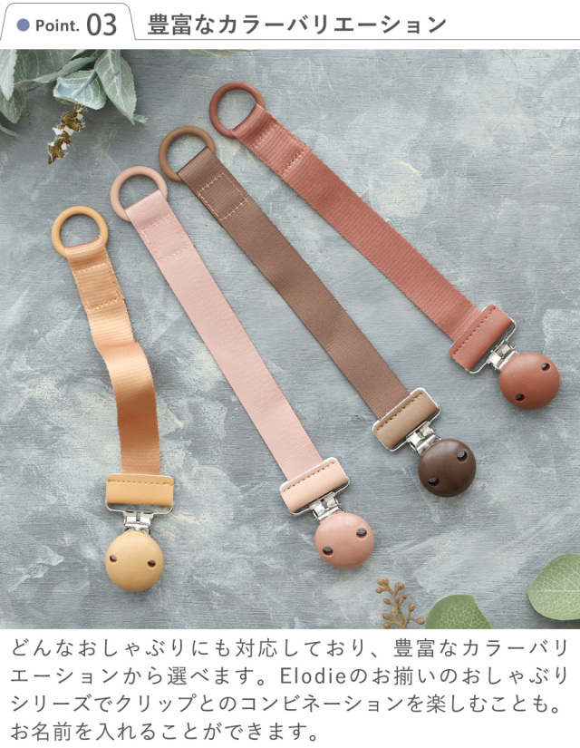 | 【出産祝い】エロディ(Elodie)ウッドおしゃぶりクリップ おしゃれ×高品質 エロディの こだわりおしゃぶりクリップ |