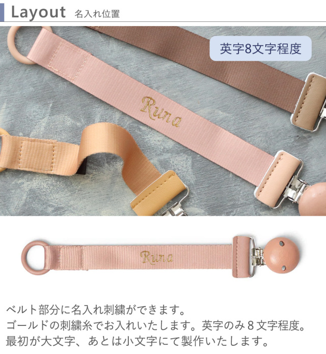 おしゃぶり以外におもちゃ類にも取り付けることが◎お名前が入るので、