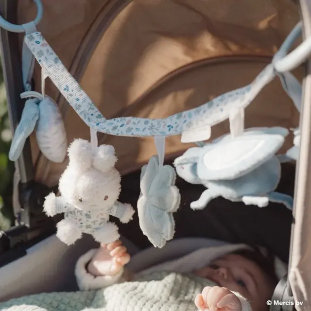 ベビーカーやチャイルドシートに取り付けて、一緒におでかけ。