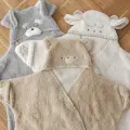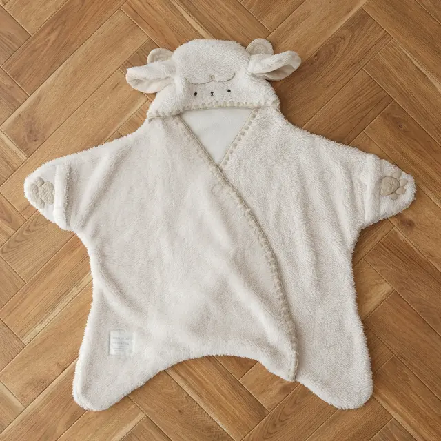 赤ちゃんをすっぽり包み込む、もこもこ素材のベビーおくるみ。