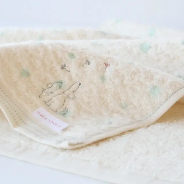 柔らかな生成り色のタオルに映える可愛らしいデザインです。