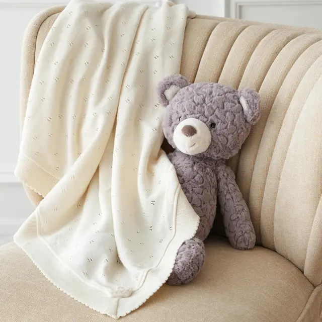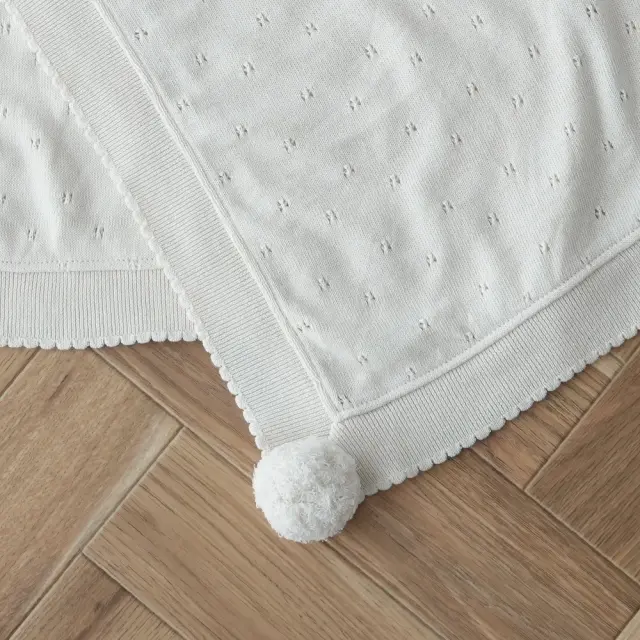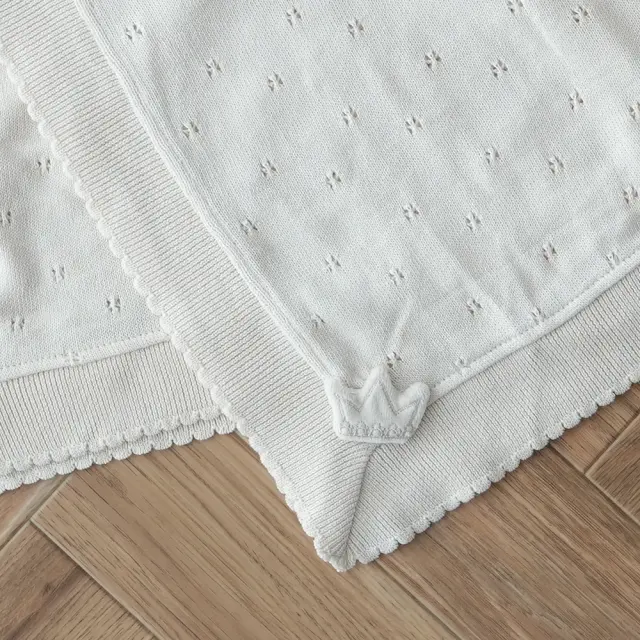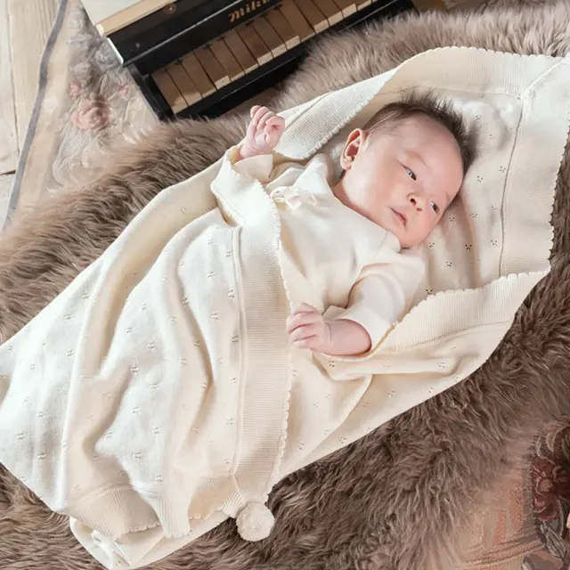 赤ちゃんの愛らしさを引き立てるアクセントが選べるオーガニックコットンのニットブランケット。