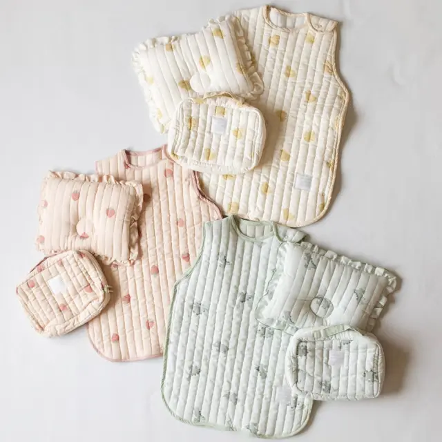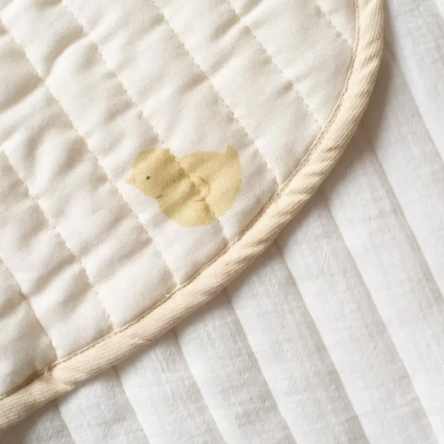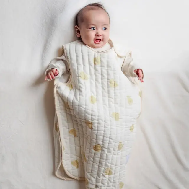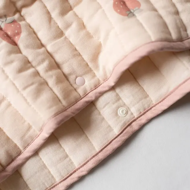 通気性のよいモスリンガーゼのキルト生地を使用した、さらっとした着心地のスリーパー。