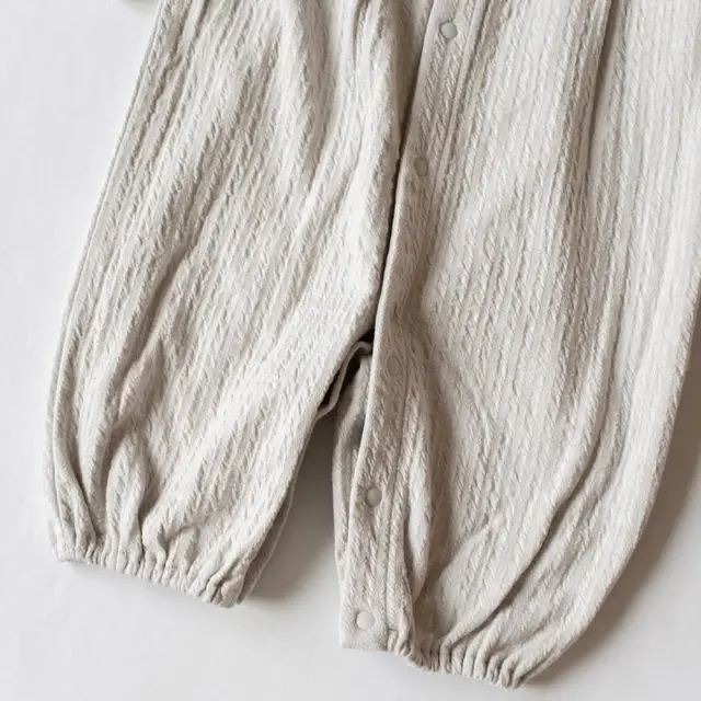 スナップボタンの止め方を変えれば足が分かれるので、ハイハイの時期まで長く使えます。