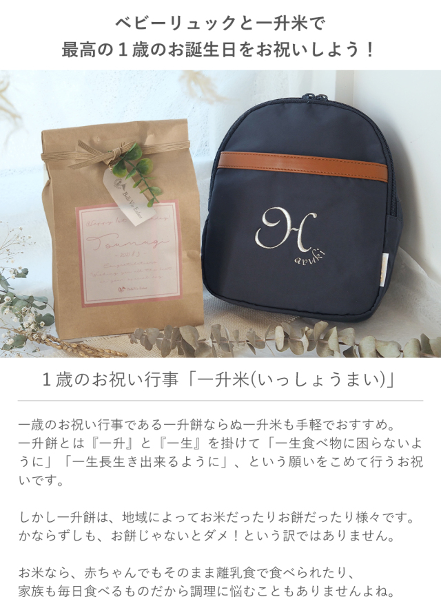 一歳のお祝い行事である一升餅ならぬ一升米も手軽でおすすめ。