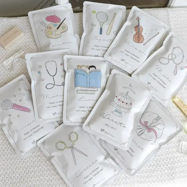 9種類のイラストデザインとお名前や生年月日が入るデザインの10セット。
