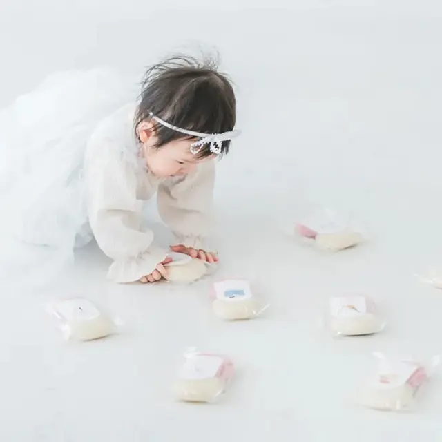 選びとり一升餅の1つには、お名前や生年月日が入るデザインも♪