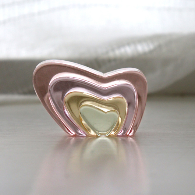アクリルミラーや反射するテーブルに置くと、ハートから蝶が現れます。