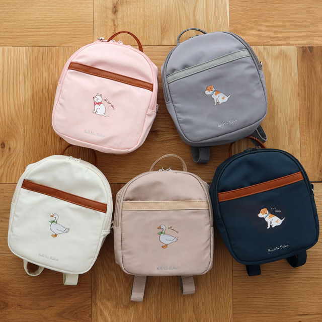 ナイロン地のリュックは小さなお子さまも背負いやすい軽さが魅力。