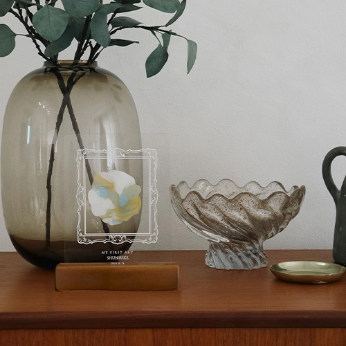 アクリルのプレートで飾ったときもインテリアに映えるお洒落さです。