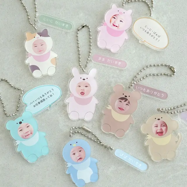 お子様のお顔を入れたかわいいアクリルキーホルダー。