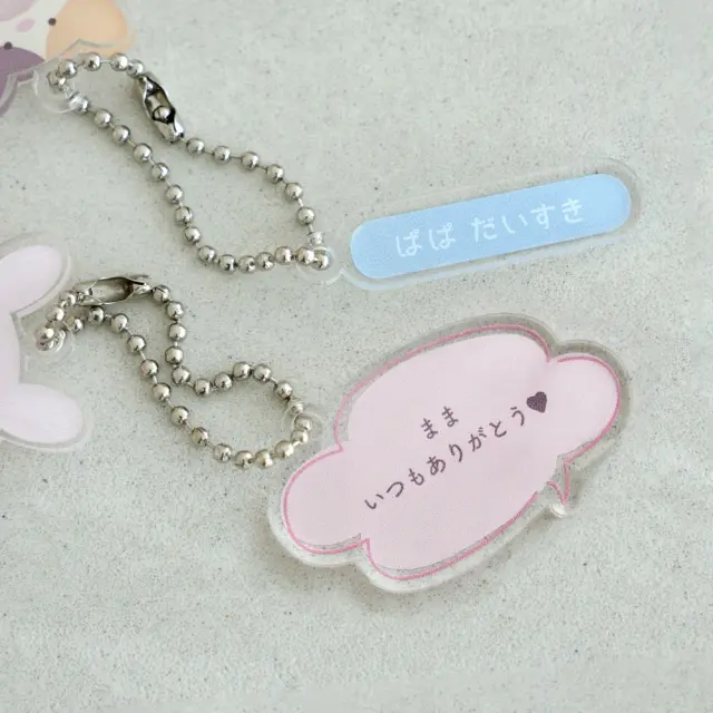 「いつもありがとう」「だいすきだよ」など、温かい言葉をそえたチャームがセットになっています。