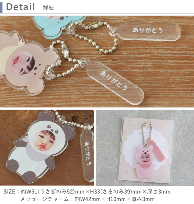 さらに、キーホルダーには「ありがとう」のメッセージチャームもついています。