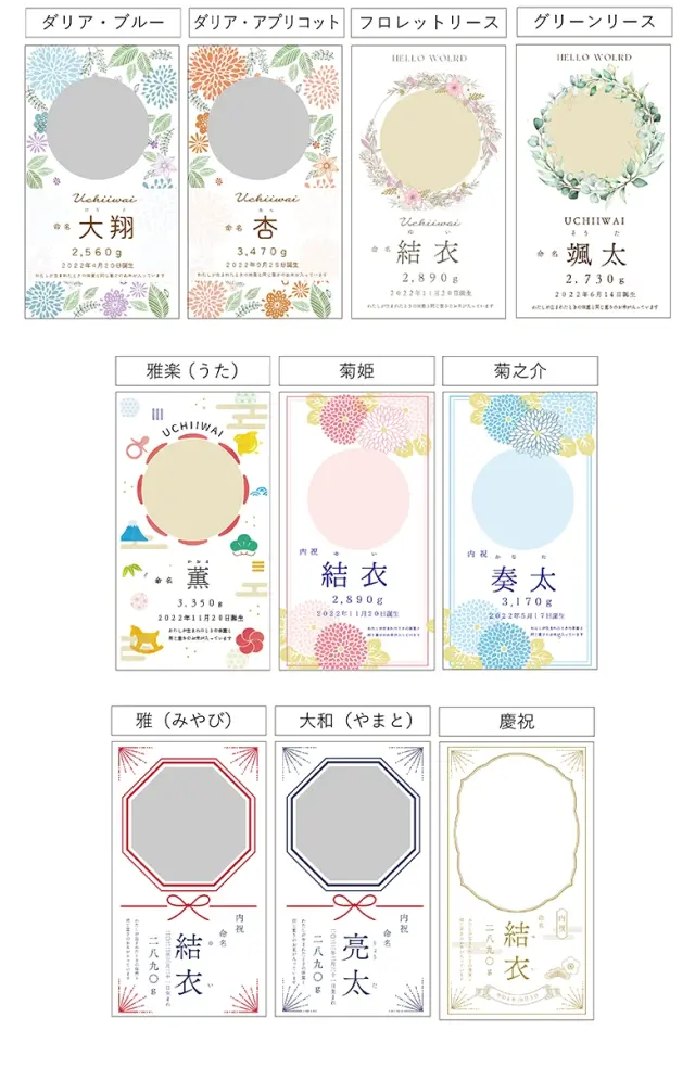 赤ちゃんの魅力が引き立つようデザイナーがこだわって作ったベルビーオリジナルのかわいいデザイン。 トレンドにそったおしゃれな洋風タイプから、落ち着いた和風デザインまで、豊富なデザインからお選びいただけます。