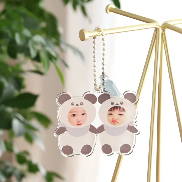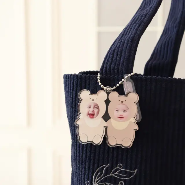 2人手を繋いだ着ぐるみデザインがかわいい♡写真入りキーホルダー。