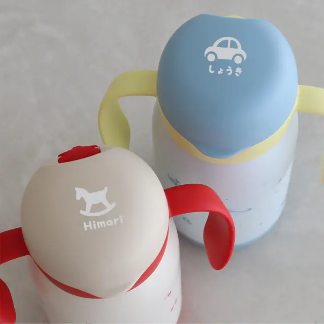どちらも蓋の部分にお名前やイラストをお入れすることができ、ご出産祝いやお誕生日などのギフトとしてもおすすめです。