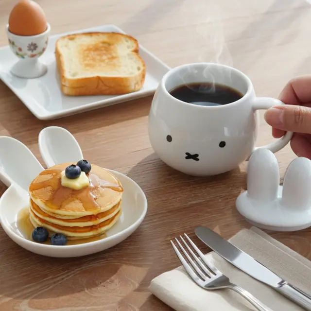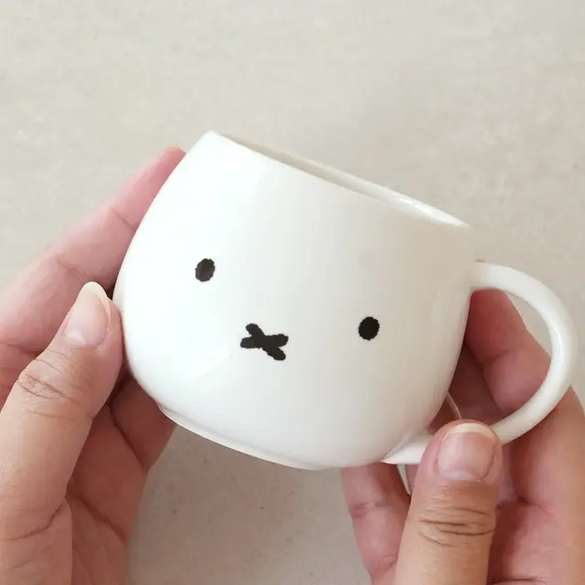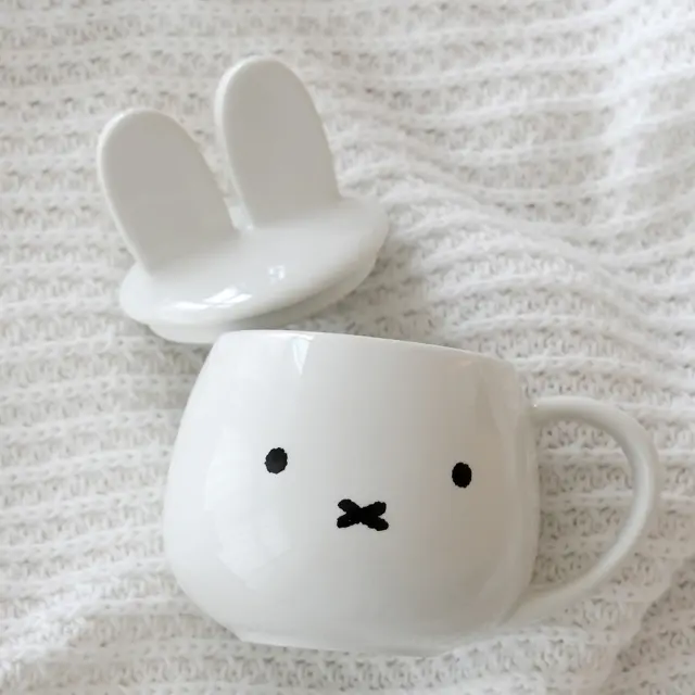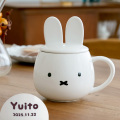 白いマグに耳付きのフタを乗せると、まるでミッフィーがこちらを見ているみたい。