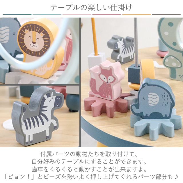 付属パーツの動物たちを取り付けて、自分好みのテーブルにすることができます。