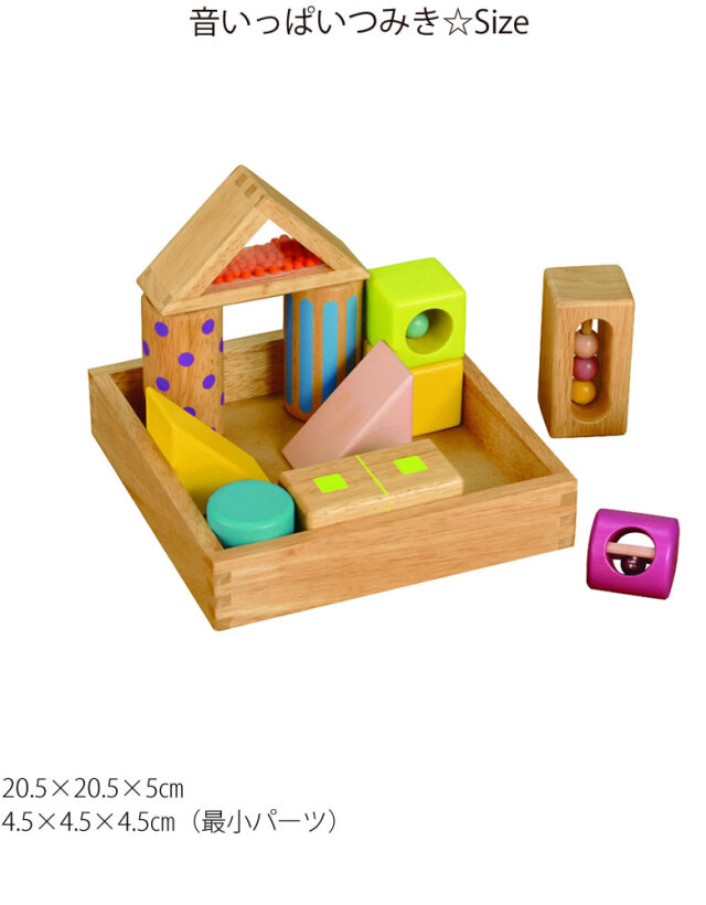 はじめてのつみきにぴったり! 見て、振って、積んで、 楽しいしかけがいっぱいの木のおもちゃ☆