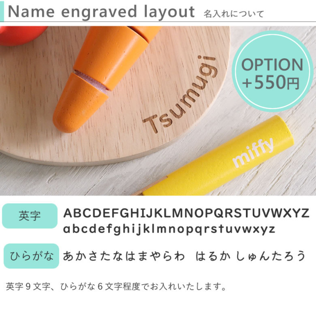 ミッフィーの形をしたまな板にお子さまのお名前を刻印してお届けします。
