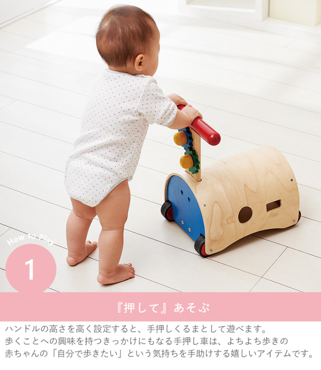 歩くことへの興味を持つきっかけにもなる手押し車は、よちよち歩きの