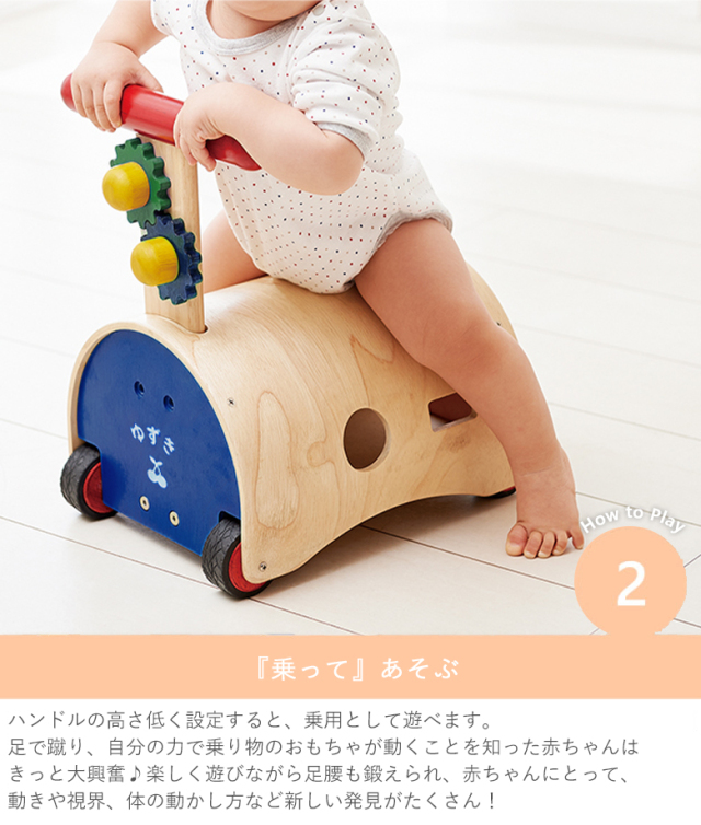 | 【1歳誕生日 知育玩具】名前入りのっておして!すくすくウォーカー 手押しと乗用、2WAYで遊べる♪ 知育遊びも楽しめる!すくすくウォーカー ☆ラッピングについて +330円でプレミアムラッピングにてお届け♪ ※ラッピングを希望しない場合は「のし」対応不可となります。 <名入れについて> +550円ですくすくウォーカーにお名前をお入れすることが出来ます。 お名前はひらがな又は英字でお入れいたします。 マークはくま・うさぎ・ほし・ハート・はな・さくらんぼ・王冠・車・木馬からお選びいただけます。 ご注文時、備考欄にお入れするお名前を 英字9文字程度、ひらがな・カタカナ6文字程度 で入力して下さい。 ※頭文字が大文字それ以降は小文字となります。 予めご了承くださいませ。 ※製作開始から2〜3営業日後に発送します(土日祝除く) お早めにお申し込み願います。 |
