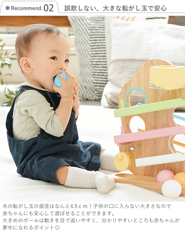 木の転がし玉の直径はなんと4.5cm!子供の口に入らない大きさなので