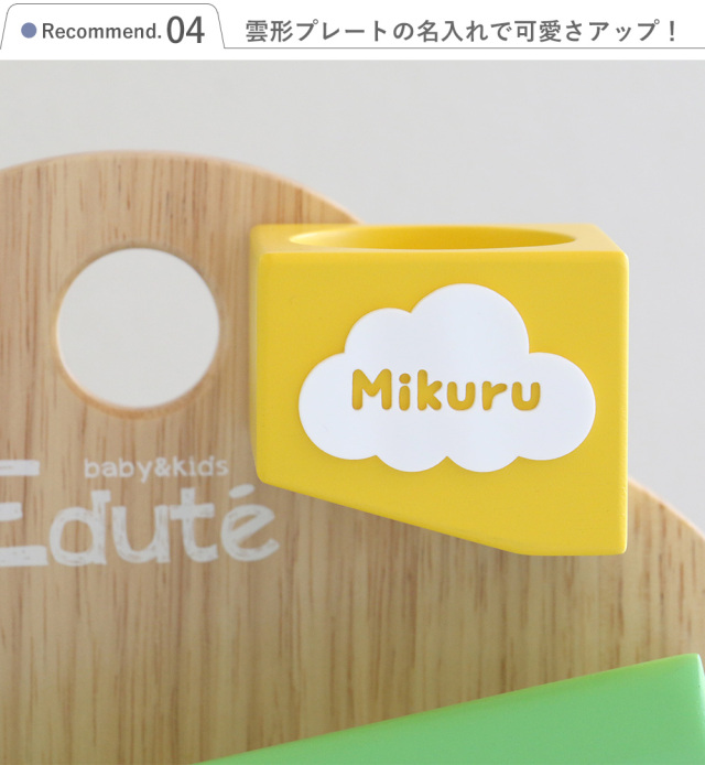 黄色の煙突に雲形のプレートでお名前が入れられます。