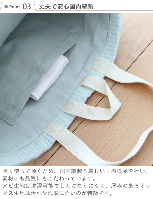 ヌビ生地は洗濯可能でしわになりにくく、厚みのあるオックス生地は汚れや洗濯に強いのが特徴です。