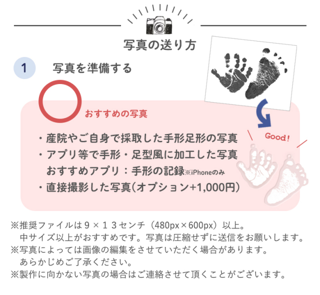 手形足形のお写真をメールで送るだけの簡単注文◎
