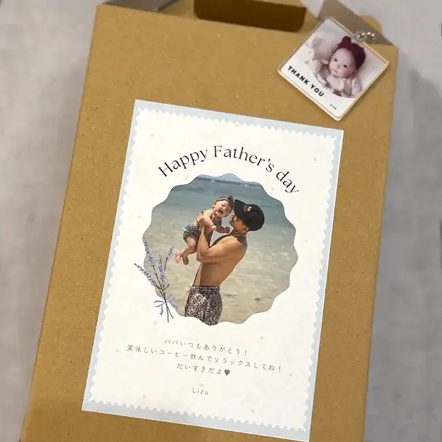 お写真とお名前、メッセージが入ったおしゃれなコーヒーギフト。