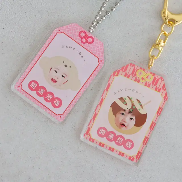 いつでも身につけたい世界に一つだけの顔写真入りのお守りキーホルダー。