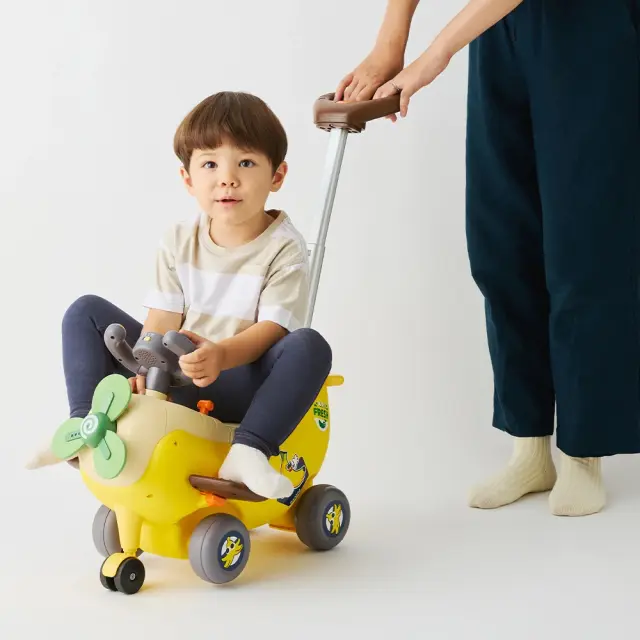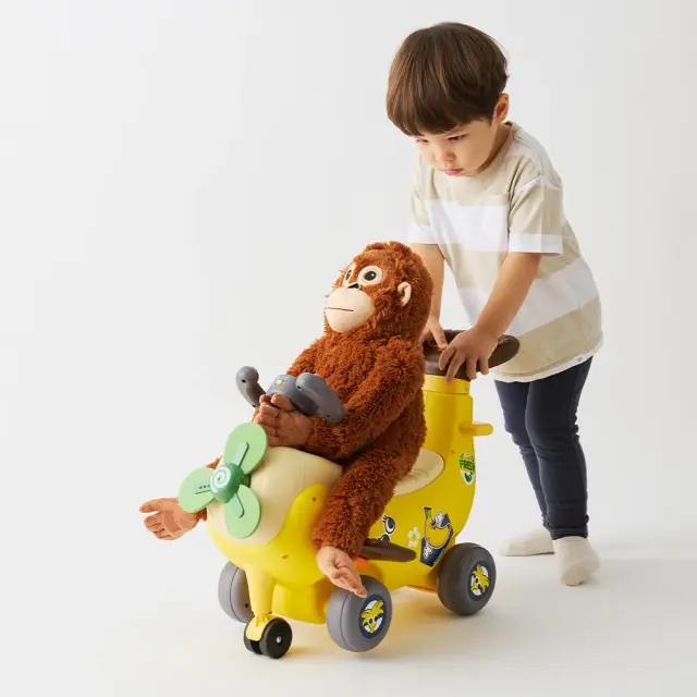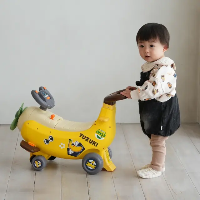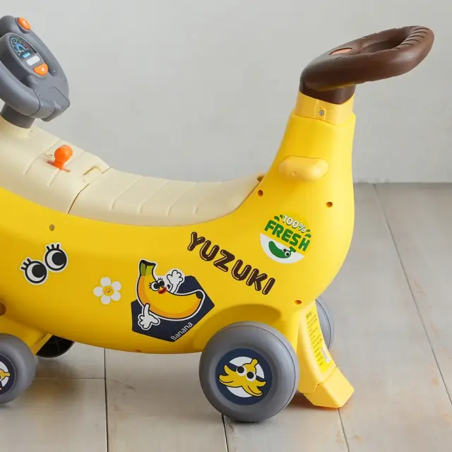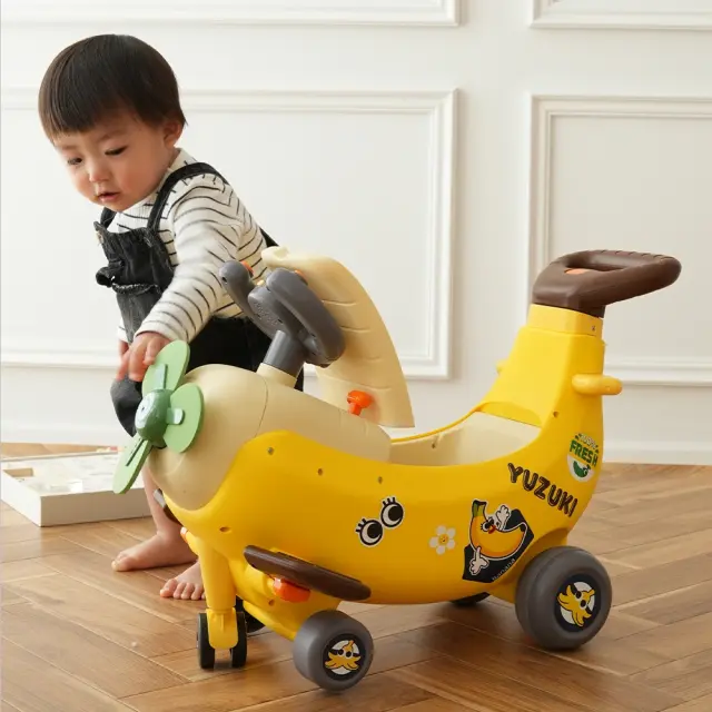 バナナとひこうきがひとつになった、ユニークでかわいいのりもののおもちゃ。