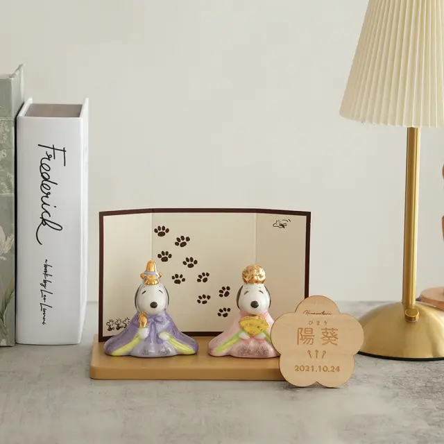 白い屏風にはウッドストックと小さな足跡が描かれ、可愛らしい仕上がりです。