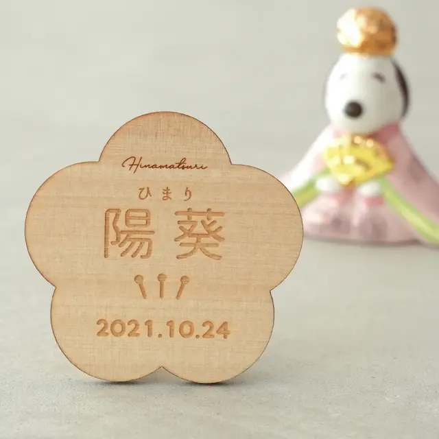 お子さまのお名前や生年月日を入れられる木製札をオプションでご用意。