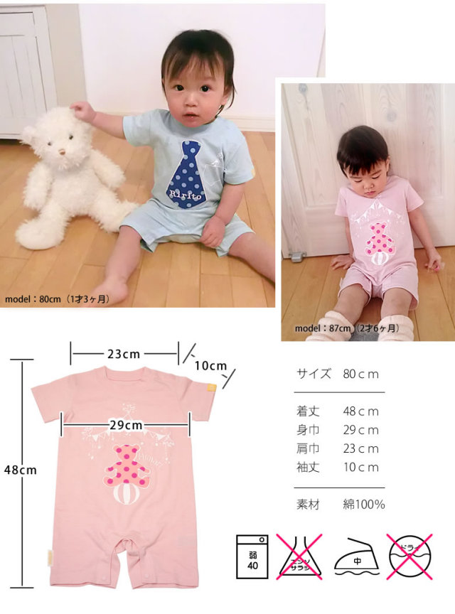 ロンパース:着丈48cm、身巾29cm、肩巾23cm、袖巾10cm