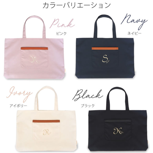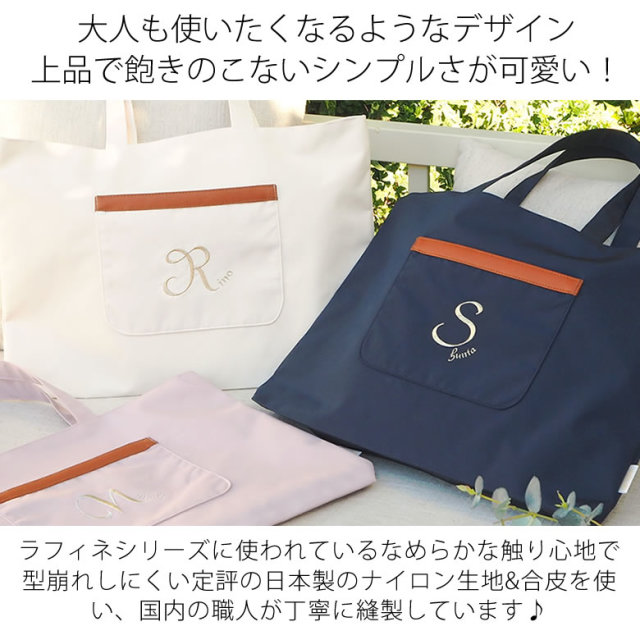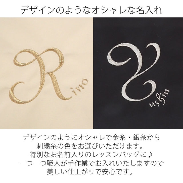 シンプルで上品♡デザインのような名前ししゅうが目を惹くレッスンバッグ。