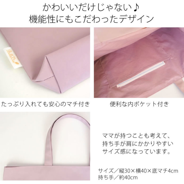 ママが持つことも考えて、持ち手が肩にかかりやすいサイズ感になっています。