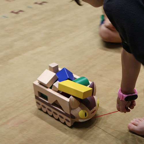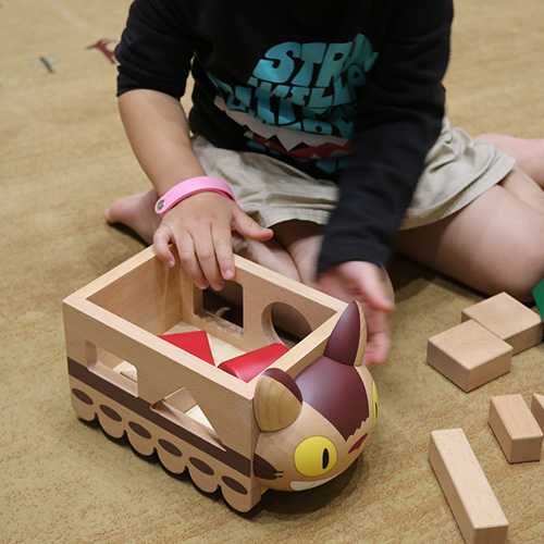 ネコバスが積み木を乗せてお部屋にやってきた♪