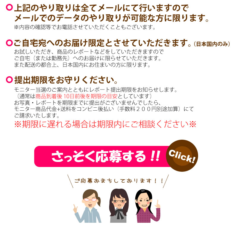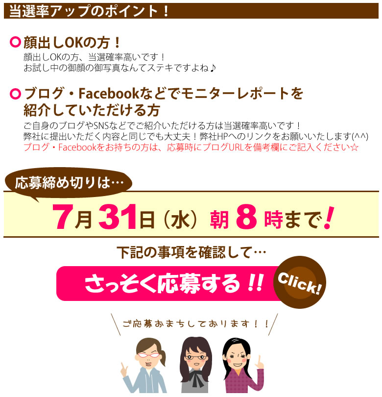 当選者発表!! 徳島県 Y様 ・ 山口県 K様 の2名様に決まりました。 当選メールをお送りいたしましたので、8/5(月)AM8:00までにご返信下さい。 ※期限までにご返信がございませんでしたら、当選を取り消させていただき、 次点の方に権利を譲渡いたしますので、ご了承ください。